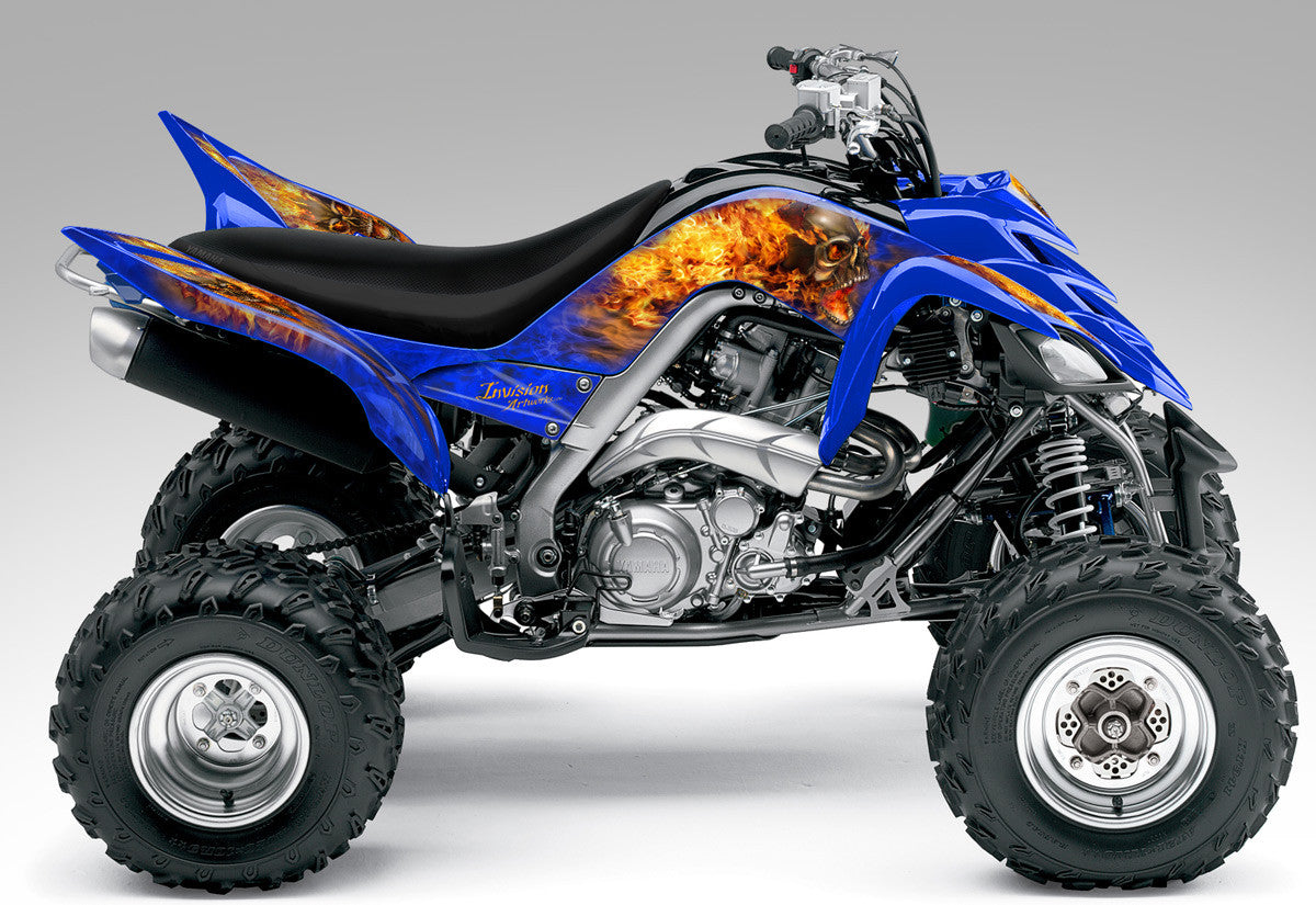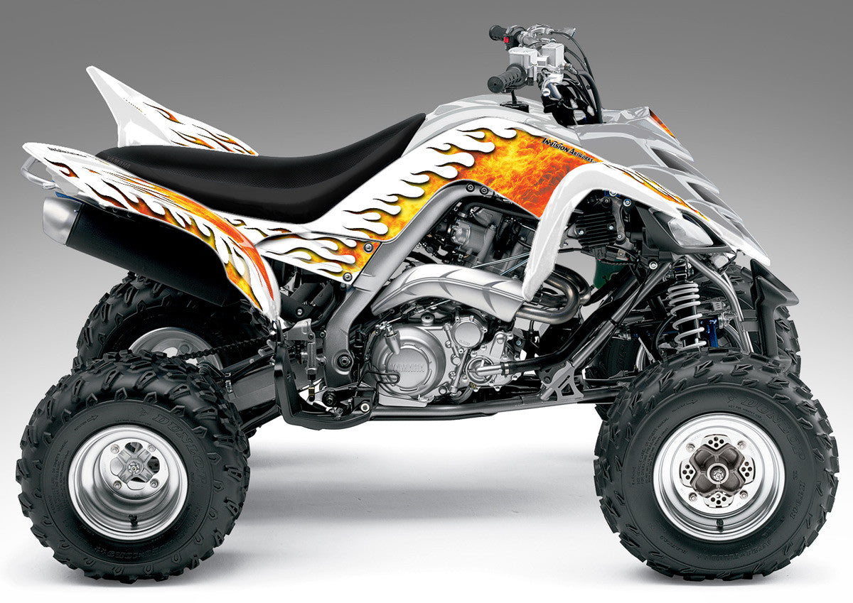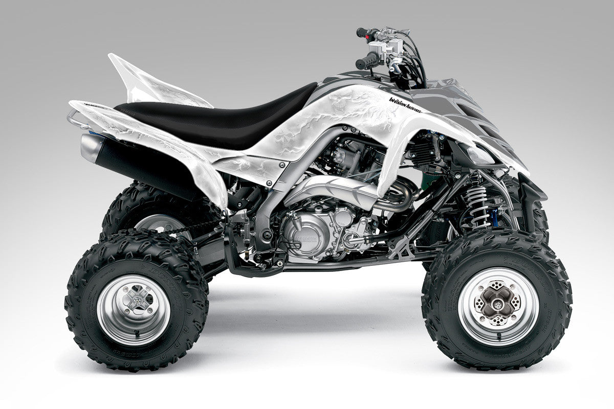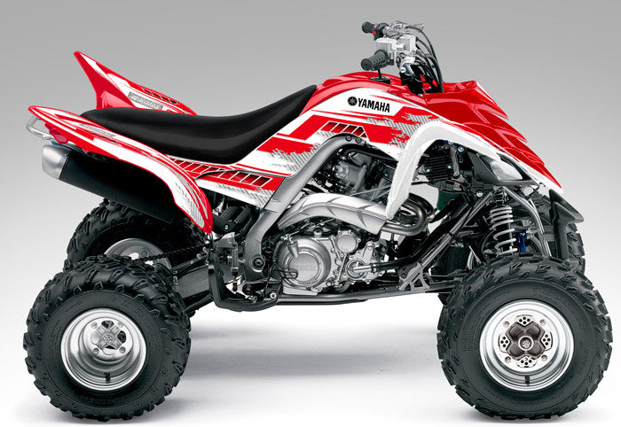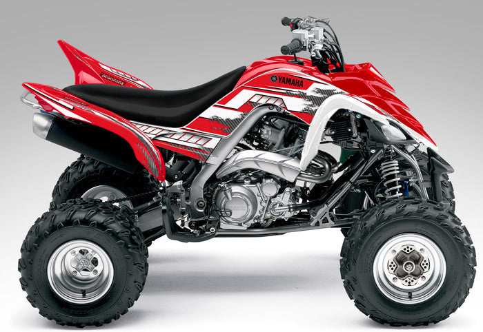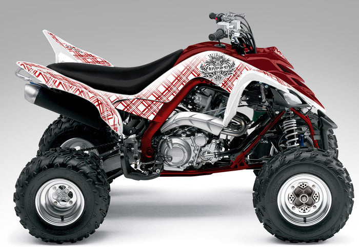 Full coverage graphics kit - Made for Yamaha Raptor 700 (2006-2012) ATV models. Detailed, high resolution artwork, manufactured with aggressive adhesive and a thick, UV protected, scratch resistant laminate that holds up against harsh riding conditions. Available in over 100 designs...