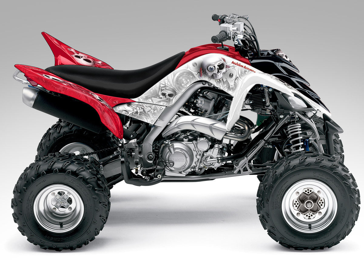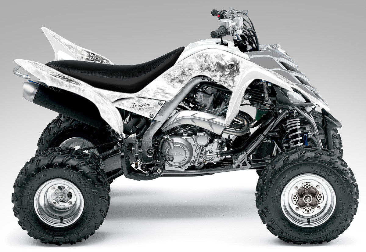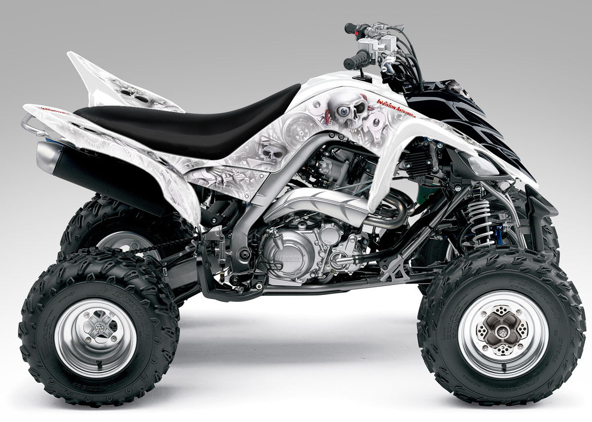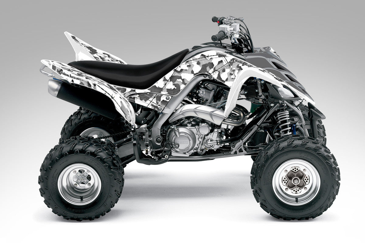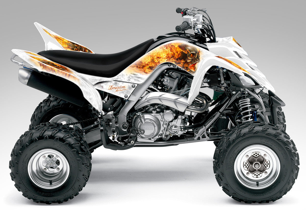 Full coverage graphics kit - Made for Yamaha Raptor 700 (2006-2012) ATV models. Detailed, high resolution artwork, manufactured with aggressive adhesive and a thick, UV protected, scratch resistant laminate that holds up against harsh riding conditions. Available in over 100 designs...